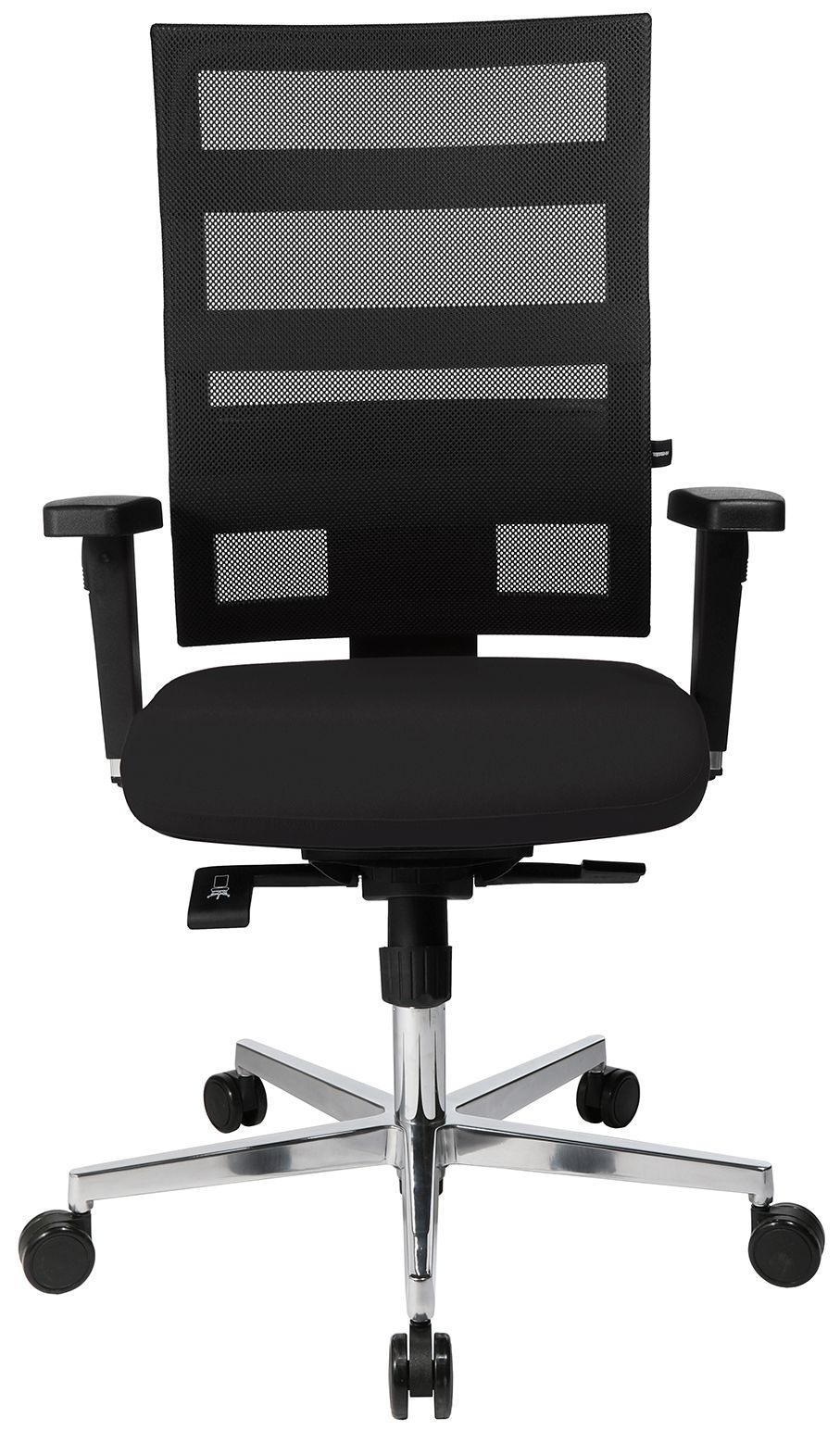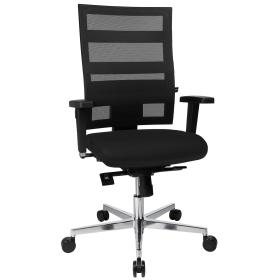 Der Bürostuhl Topstar Sitness X-Pander Plus verfügt über eine Rückenlehne mit atmungsaktivem Netzbezug. Diese zeichnet sich durch seine unverwechselbare Optik aus. Über das up-and-down System kann die Rückenlehne des X-Pander Plus ganz einfach in der Höhe verstellt werden. Der Fitness-Drehstuhl mit seiner flachen, balancierender Sitzfläche ist in der Tiefe verstellbar und kann so optimal auf die richtige Körpergrösse angepasst werden. Das in der Sitzfläche unsichtbar integrierte Sitness-Gelenk sorgt für eine Entkopplung von Stuhlober- und Unterteil und somit für ein dreidimensional bewegliches Sitzverhalten. Die Federkraft ist individuell auf das Körpergewicht einstellbar und mehrfach arretierbar. Der Sitness X-Pander Plus Bürodrehstuhl ist mit höhen-, breiten- und tiefenverstellbaren Armlehnen, einem polierten 5-Stern Aluminiumfuss und Teppichrollen ausgerüstet. Der Sitness X-Pander Plus ist GS geprüft und erfüllt damit sämtliche sicherheitsrelevanten Voraussetzungen. Der Hersteller gewährt auf dieses Produkt eine Garantie von 3 Jahren.
