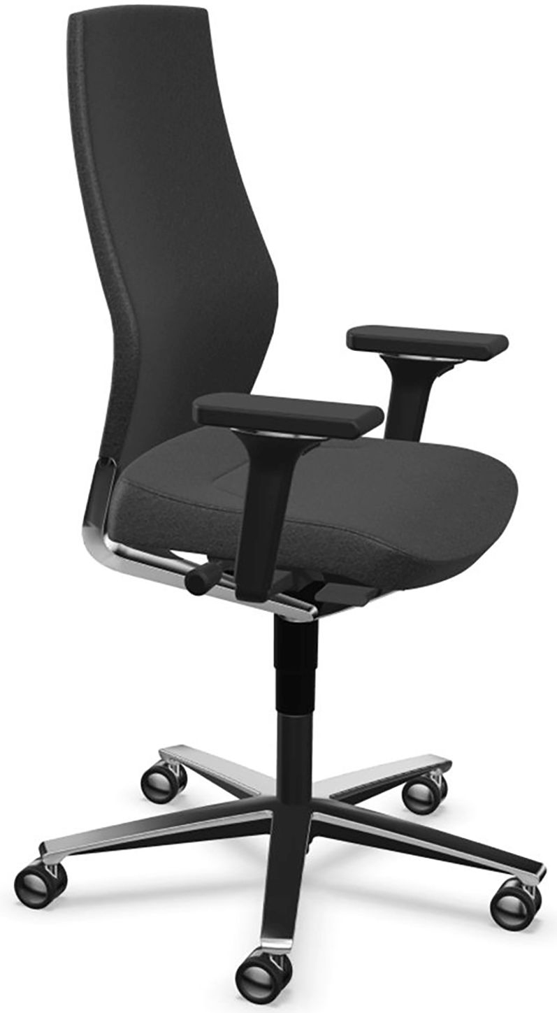 Der Züco Bürostuhl Selvio verkörpert Qualität bis ins kleinste Detail. Durch die Syncro-Motion X®-Mechanik mit seitlicher, schneller Feineinstellung des Rückenlehnengegendrucks und seiner schlanken Rückenlehne, die einer Doppel-S-Kurve der Wirbelsäule nachempfunden ist, wird der Bürodrehstuhl zu einer Symbiose aus markantem Design und perfekter Ergonomie. Die Sitzneigefunktion erlaubt es, den Sitz des Bürostuhls leicht nach vorne abzuwinkeln. Die leicht nach vorn abfallende Sitzfläche wirkt dem Nach-Hinten-Kippen des Beckens entgegen und entlastet wegen des grösseren Winkels zwischen Oberkörper und Oberschenkel den gesamten Körper. Die Sitztiefe kann mittels Schiebesitz angeglichen werden. Der ergonomische Bürostuhl Selvio ist mit höhen- und breitenverstellbaren Armlehnen, einem 5-Stern Fusskreuz und Hartbodenrollen ausgerüstet. Der Stuhl von Züco ist GS geprüft und wird vom Hersteller mit einer Garantie von 5 Jahren ausgeliefert.