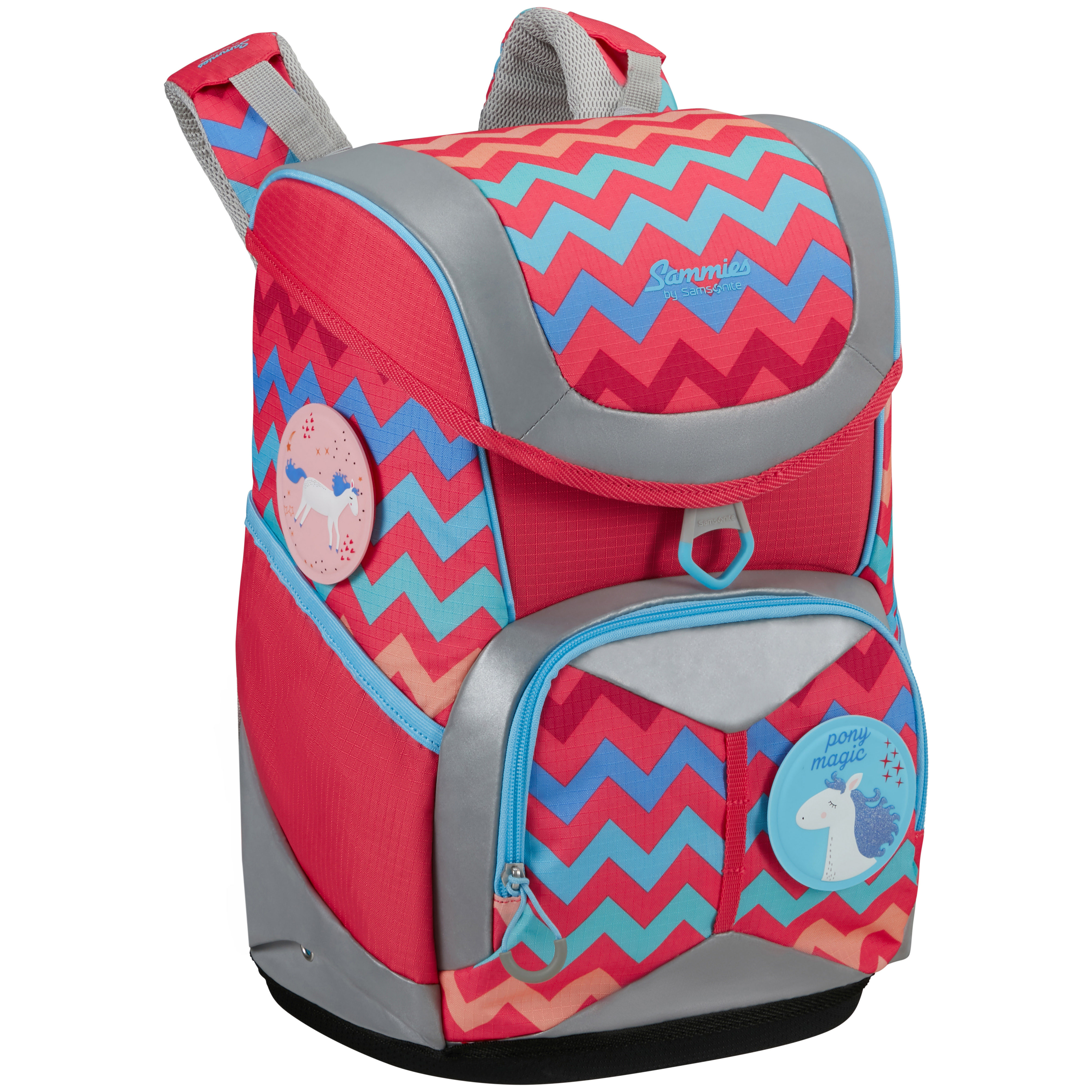 Mit der ergonomischen Kollektion Ergofit Set 2.0 Backpack in neuen, lustigen Drucken ist Sammies by Samsonite bereit für neue Abenteuer. Die Kollektion Ergofit bietet qualitativ hochwertige, ergonomische Rucksäcke und dazu passende Artikel. Dank des ergonomischen Designs der Rucksäcke sind Kinderrücken optimal geschützt. Sie sind ideal geeignet für Kinder vom ersten bis dritten Schuljahr. Das Sortiment an leichtgewichtigen und wasserabweisenden, ergonomischen Artikeln wurde um eine brandneue Sporttasche erweitert.Die Schultergurte und das atmungsaktive, gepolsterte Rückenpanel können an die Grösse des Kindes angepasst werden. Der Schulthek kann so «mitwachsen». Der gepolsterte Hüftgurt trägt wesentliches dazu bei die Schultern zu entlasten. Die reflektierenden Details und Schlaufe zur Befestigung einer LED-Lampe erhöhen die Sicherheit auch in der Dunkelheit. Mit den wechselbaren Klett-Buttons kann der Schulranzen nach Lust und Laune immer wieder neugestaltet werden.