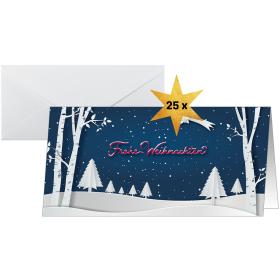Mit einmaligem Motiv und ruck-zuck bedruckt: Weihnachts-Karten "Pop-up winter landscape" (Motiv: Pop up Winterlandschaft in blau, weiss, rot) im Format DIN lang (Weisskarton, 250 g/m², 25 Karten). Inkl. 25 passender, gummierter Umschläge. Überraschen Sie Geschäftspartner, Mitarbeiter, Kollegen oder auch Freunde und Familie mit exklusiven Grüssen zur Weihnachtszeit. Individuell und unkompliziert bedruckbar - für Ihre persönliche und einzigartige Weihnachtspost im Handumdrehen. Keine Abhängigkeit von Druckereien, geringe Auflagen ganz nach Bedarf - und das in Premiumqualität.