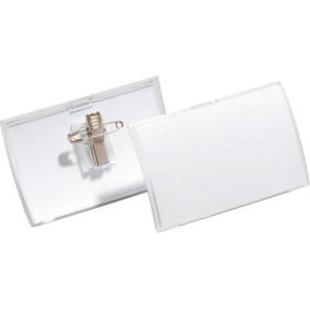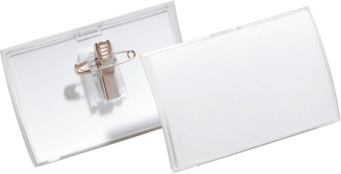 Aufklappbares Namensschild mit Kombiklemme zum Anstecken oder Anklemmen. Mit auswechselbarem blanko Einsteckschild. Ein flexibles Filmscharnier hält die Vorder- und Rückseite des einteiligen Namensschildes zusammen und ermöglicht so ein einfaches und schnelles Austauschen des Einsteckschildes.