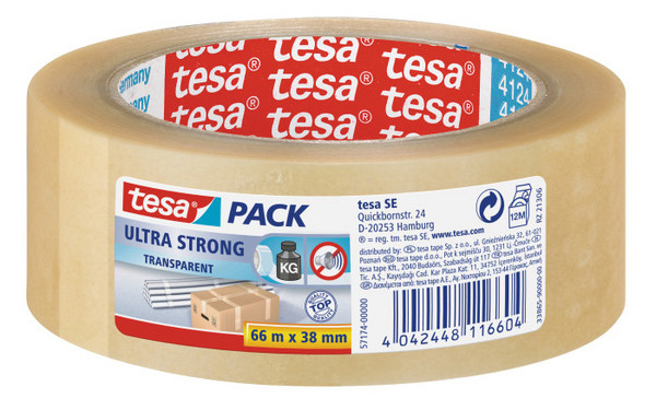PVC-Qualität, universell einsetzbar, z.B. zum Verschliessen von Schachteln, Paketen und Umschlägen, besonders klebstark, extrem reissfest, für feste Verklebungen auf Well- und Vollpappe, gleichmässig und leise abrollbar.