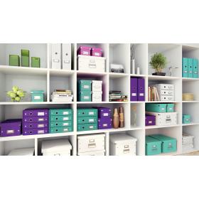 Kleine Aufbewahrungs- und Transportbox für Unterlagen in Format A5 mit laminierter Oberfläche und metallverstärkten Ecken für einen dauerhaften Schutz. Aus robuster Premium-Hartpappe. Leichtes Aufbauen dank praktischer Druckknöpfe und ebenso schnelles Zusammenklappen zum platzsparenden Verstauen. Modernes und zeitgemässes Design für Zuhause oder fürs Büro.