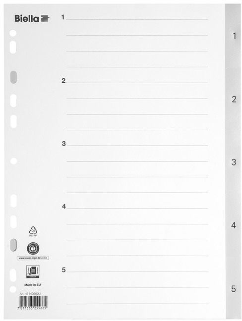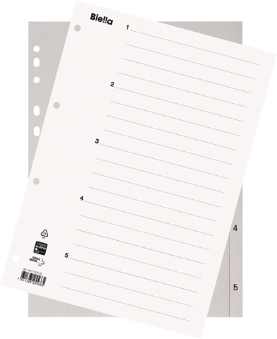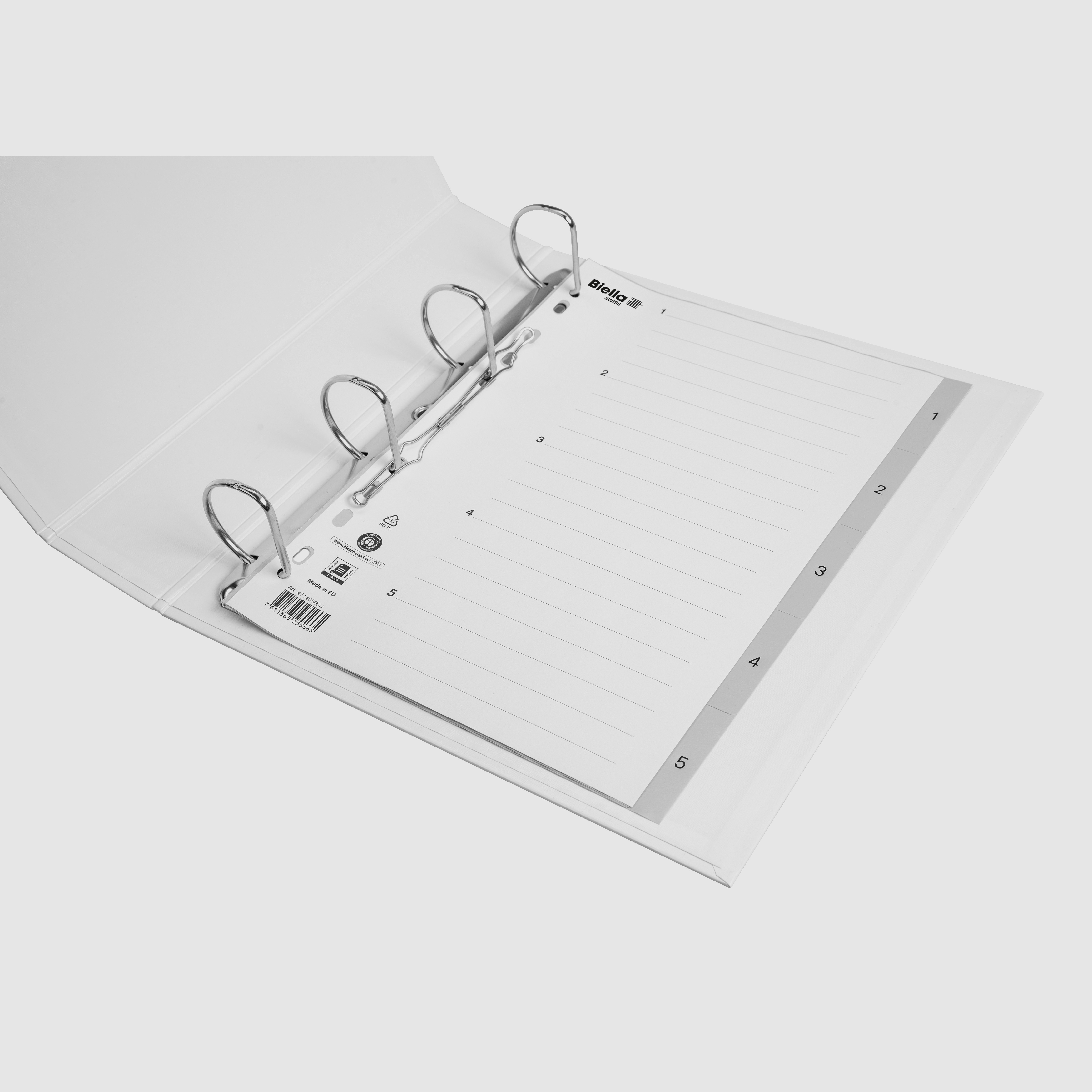 Ordnen Sie Ihre Unterlagen schnell und effizient mit den praktischen Registern von Biella. Die nummerierten Taben sowie der individuell beschriftbare Index ermöglichen ein schnelles Auffinden Ihrer Dokumente.