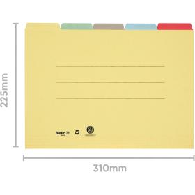 Mit der praktischen 5-teiligen Registermappe von BIELLA ist eine optimale Organisation innerhalb einer ORIGINAL®-Hängemappe garantiert. Mit ihren 5 verschieden farbigen Mappen und ausgerüstet mit versetzten Registertaben, finden Sie Ihre Unterlagen mit einem Griff. Die einzelnen Mappen sind optimal als Teilprojekte-Mappen geeignet, universell einsetzbar und schaffen Ordnung und Übersicht. Der zurückgeschnittene Vorderdeckel vereinfacht die Entnahme der Dokumente. Die Mappen sind mit 3 Beschriftungslinien und 5 Rillen ausgestattet.