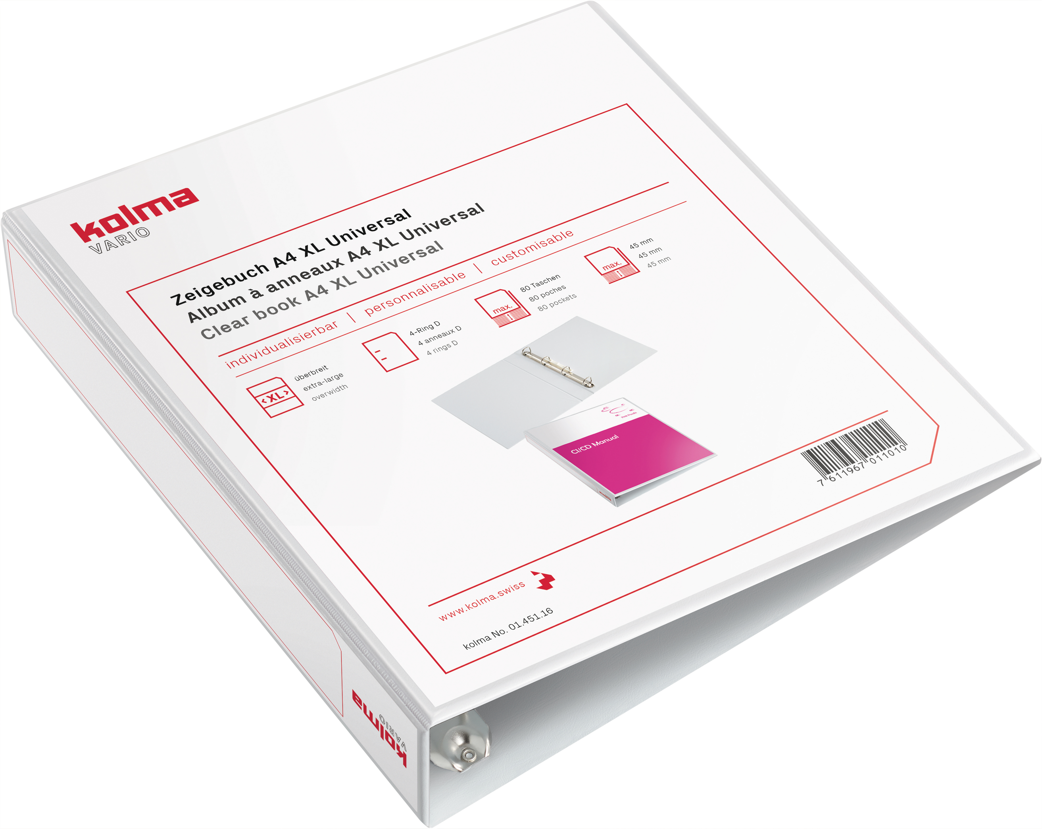 - Der Einband ist aus weissem und hochwertigem Universal-Material