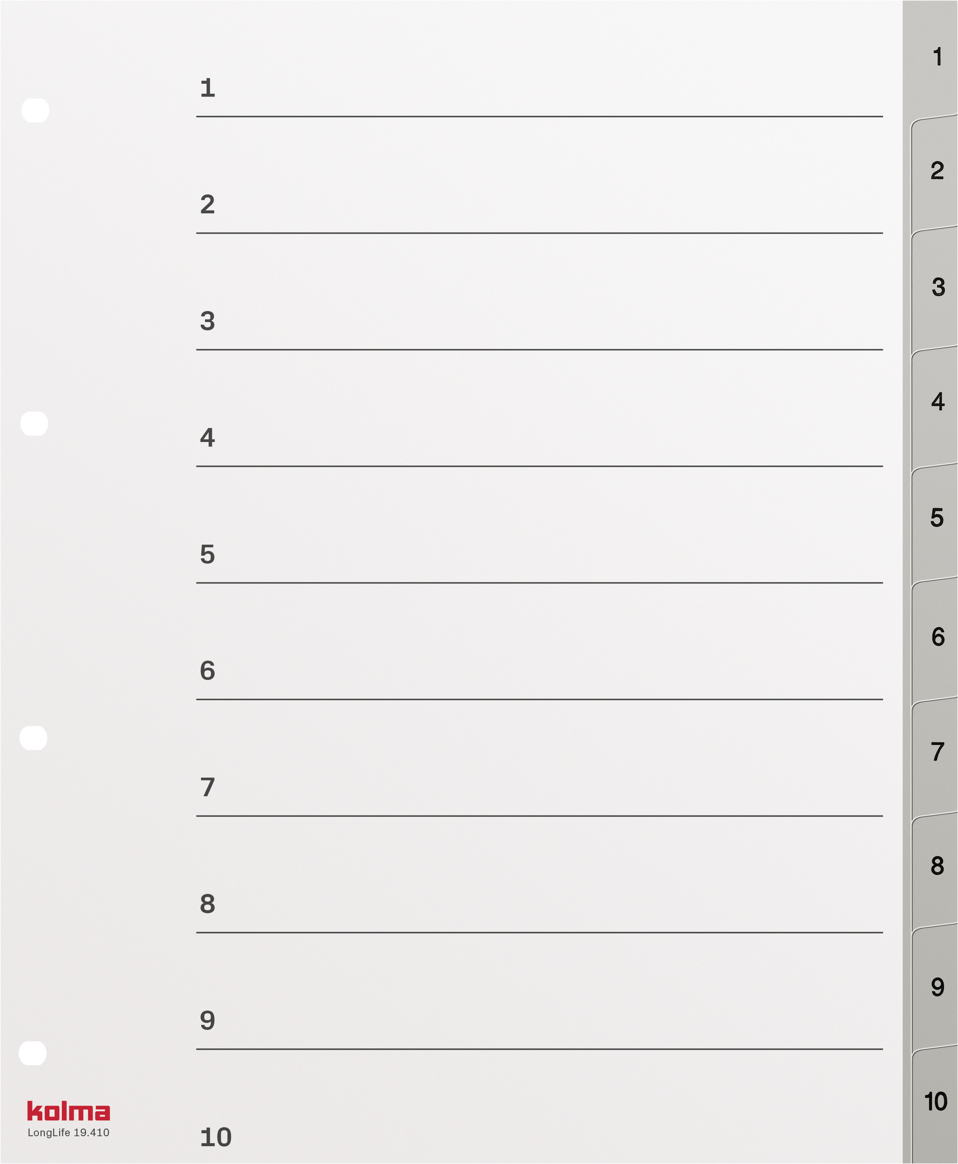 KOLMA Register LongLife A4+ 19.410.03 grau 1-10 701773-ITC