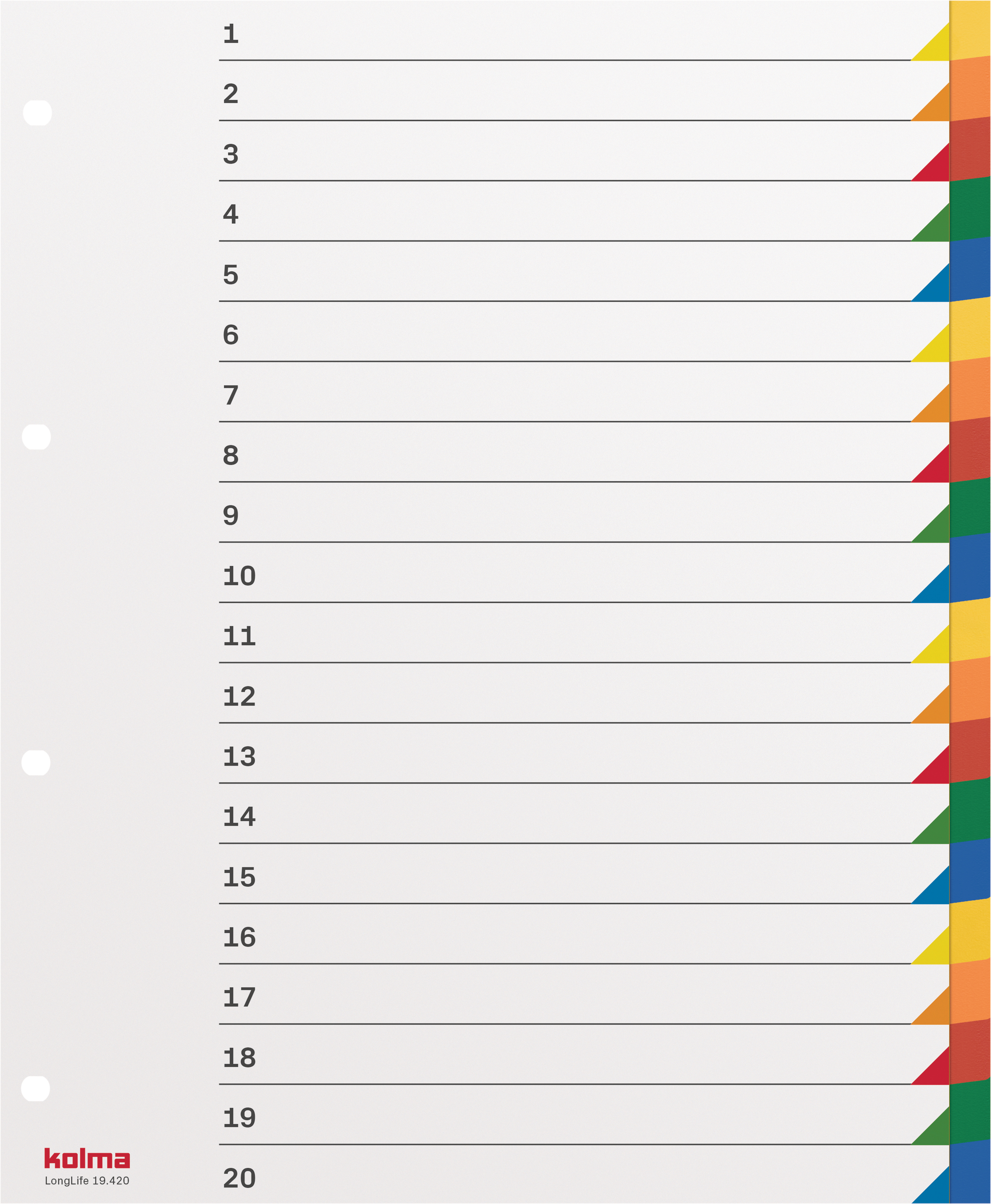 Suchen::701777 KOLMA Register LongLife A4 19 420 20 mehrfarbig blanko 20 teilig