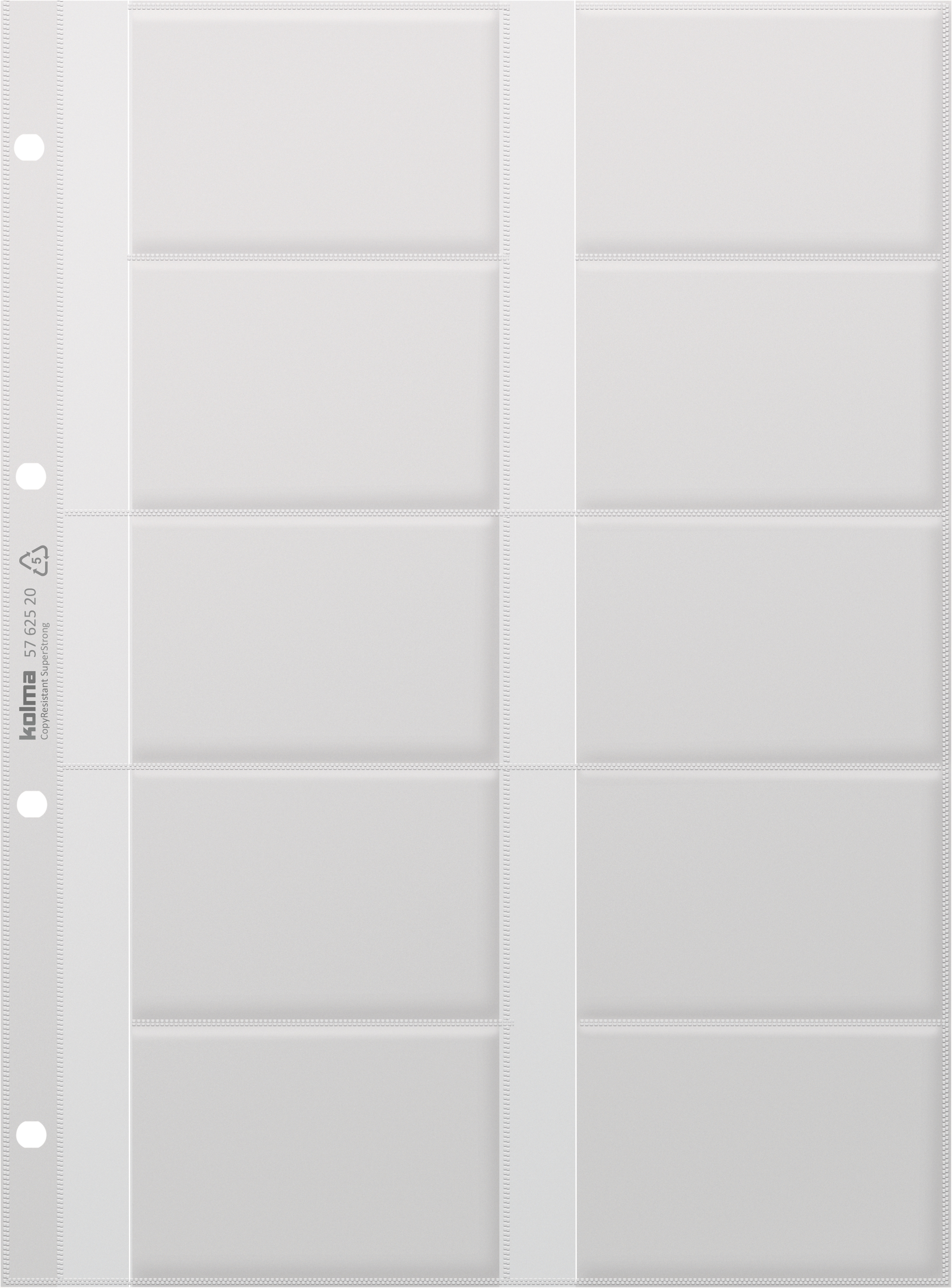 Zeigebuchtasche im Format A4 für die Ablage von 20 Karten, beispielsweise Visitenkarten, Taxcards usw. Dank Abstand zwischen den Karten können diese leicht eingeschoben werden.