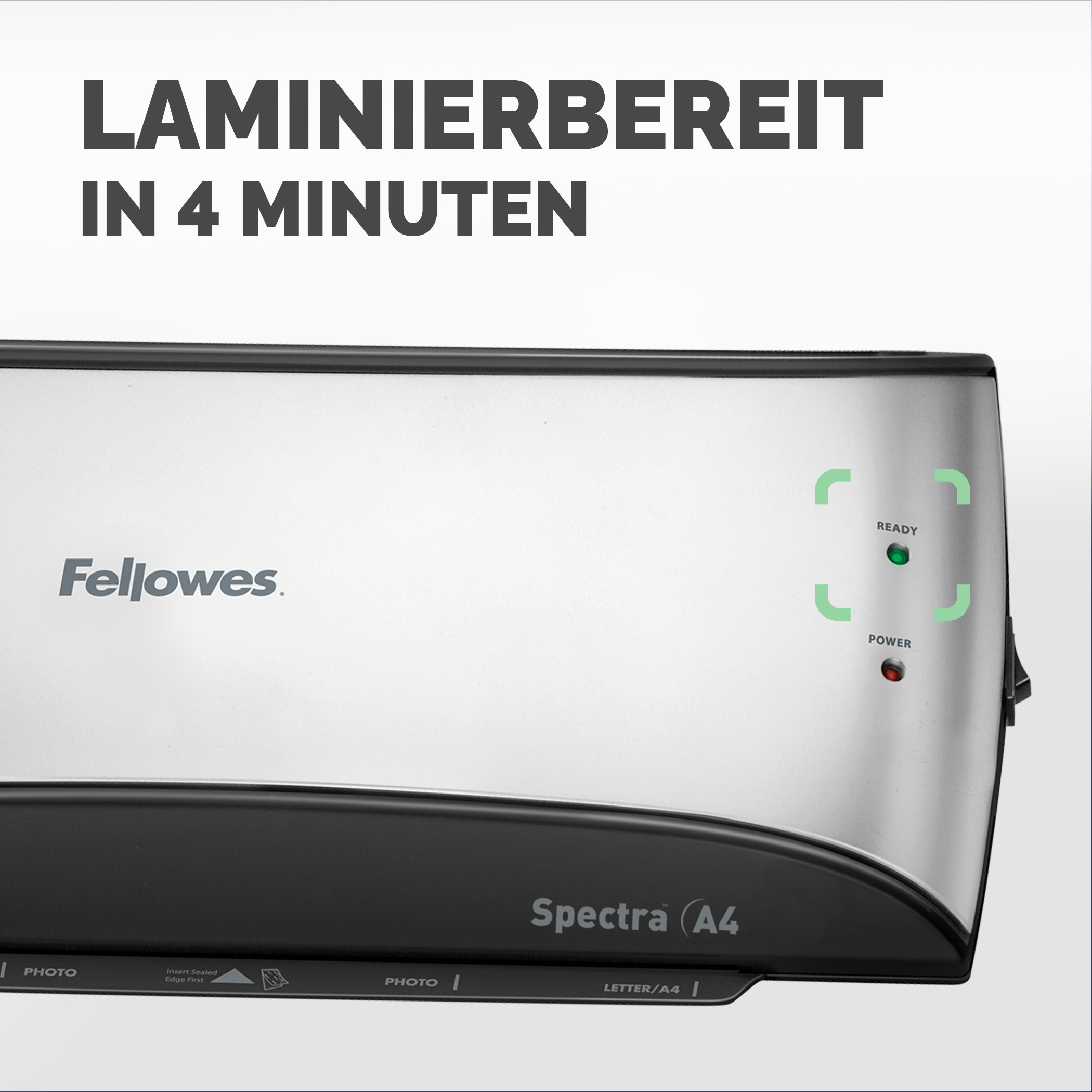 Das Spectra Laminiergerät von Fellowes ist ein benutzerfreundliches Laminiergerät für die Verwendung Zuhause und im Home Office, geeignet für Laminierfolien bis mit 80 und 125 Mikron Stärke. Das Gerät ist Laminierbereit nach ca. 4 Minuten Aufwärmzeit. Ausgestattet mit einem Auslösehebel zur Entfernung schief eingelegter Folien und automatischer Abschaltfunktion, welche nach 30 Minuten aktiviert wird und so den Energieverbrauch reduziert.