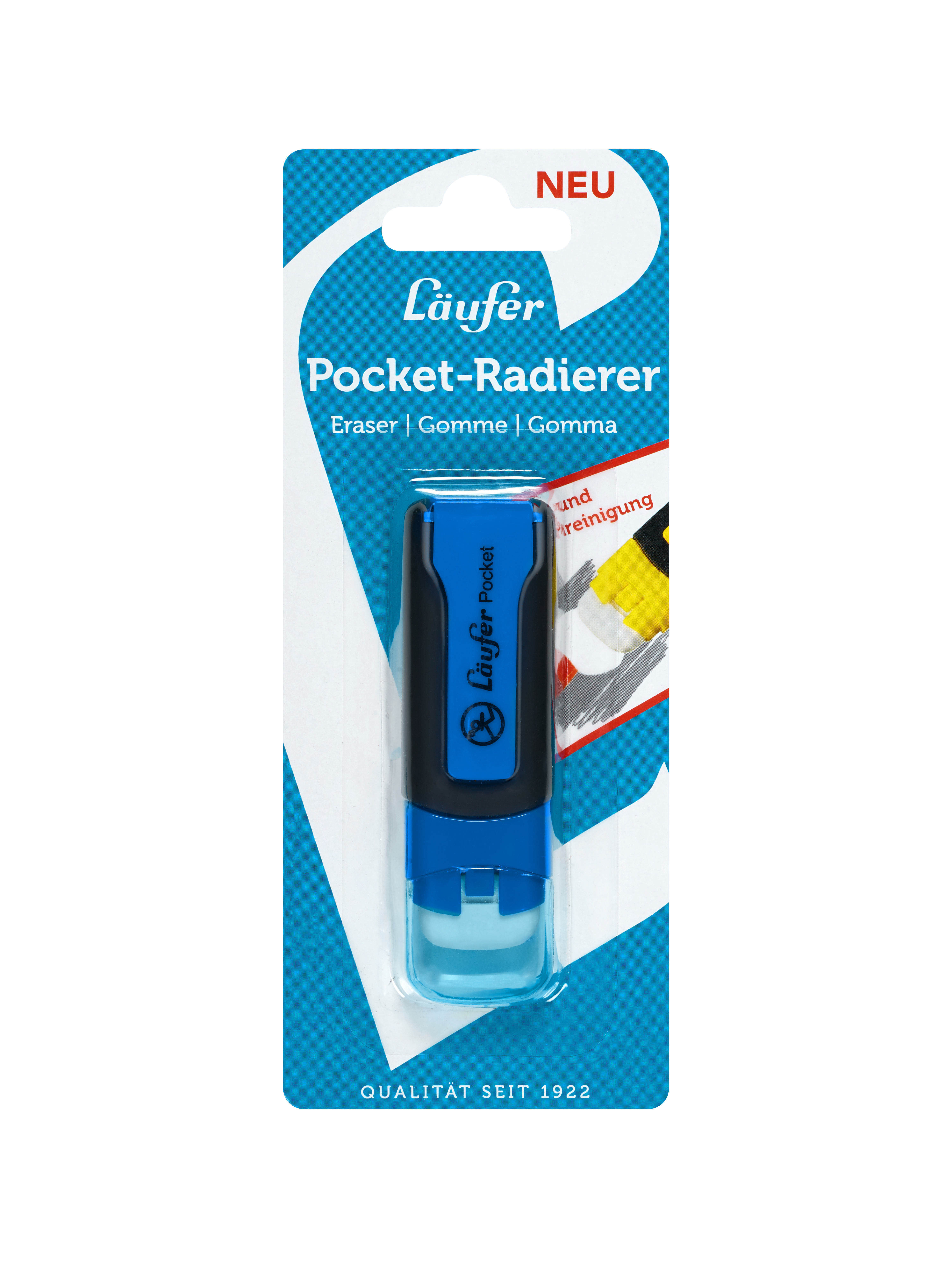 Der Läufer Pocket ist ideal zum Transport in der Tasche oder im Schlampermäppchen, da er sich mit der transparenten Schutzkappe verschliessen lässt. So wird der Radiergummi vor Verschmutzung geschützt und die Radierfläche bleibt sauber. Durch die praktische Textmarker Form lässt sich der Läufer Pocket zudem schnell zwischen den Stiften wiederfinden.