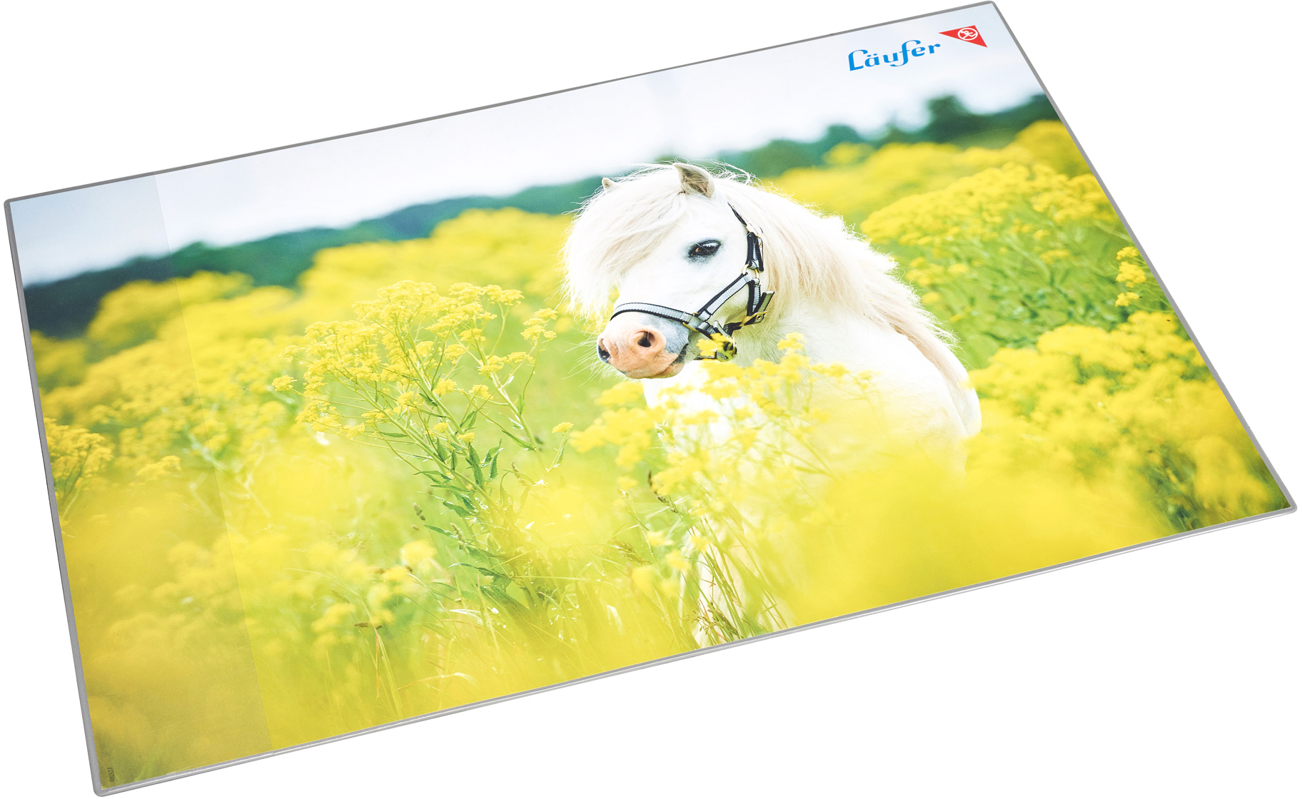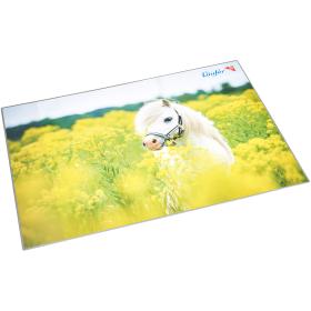 Schreibunterlage mit schönem Pferdemotiv. Dank dem 3-Schichten Aufbau wird weicheres, leichteres Schreiben ermöglicht.