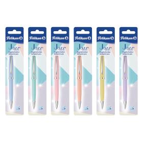 Der Jazz Kugelschreiber ist aus Metall und mit einem Drehmechanismus ausgestattet. Abgerundet wird der Kugelschreiber mit einem elastischen, Pelikan-typischen Schnabelclip. Der Schaft ist aus Messing. Der Clip und die Spitze sind verchromt. Die Mine, in der Strichbreite M, hat die Schreibfarbe blau und ist austauschbar.