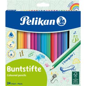 Der triangulare Buntstift ist in der jeweiligen Malfarbe lackiert. Die 12 Buntstifte in der Hängeschachtel sind FSC-zertifiziert. In der Schachtel finden sich 12 Farben, inkl. gold und silber, in der Minenstärke 4mm. Die Mine ist bruchstabil.