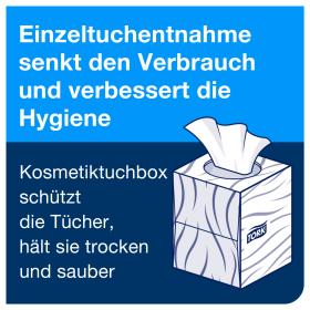 Die Tork extra weichen Kosmetiktücher werden in einem modernen Spenderwürfel geliefert, den Sie einfach dort platzieren können, wo er gebraucht wird. Mit der Premium-Qualität und -Leistung dieser Kosmetiktücher zeigen Sie Ihren Gästen, dass Sie ihnen etwas Besonderes bieten möchten.