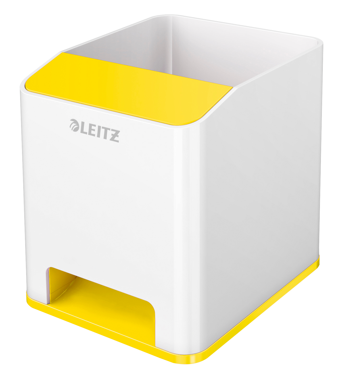 Auffälliger Leitz Stiftehalter in Premium-Qualität mit modernem zweifarbigem WOW Effekt in Hochglanz. Der Design-Stifteköcher mit Soundverstärkungsfunktion passt perfekt zu allen anderen Produkten der Leitz WOW Serie. Modernes, zeitgemässes Design zu Hause und im Büro