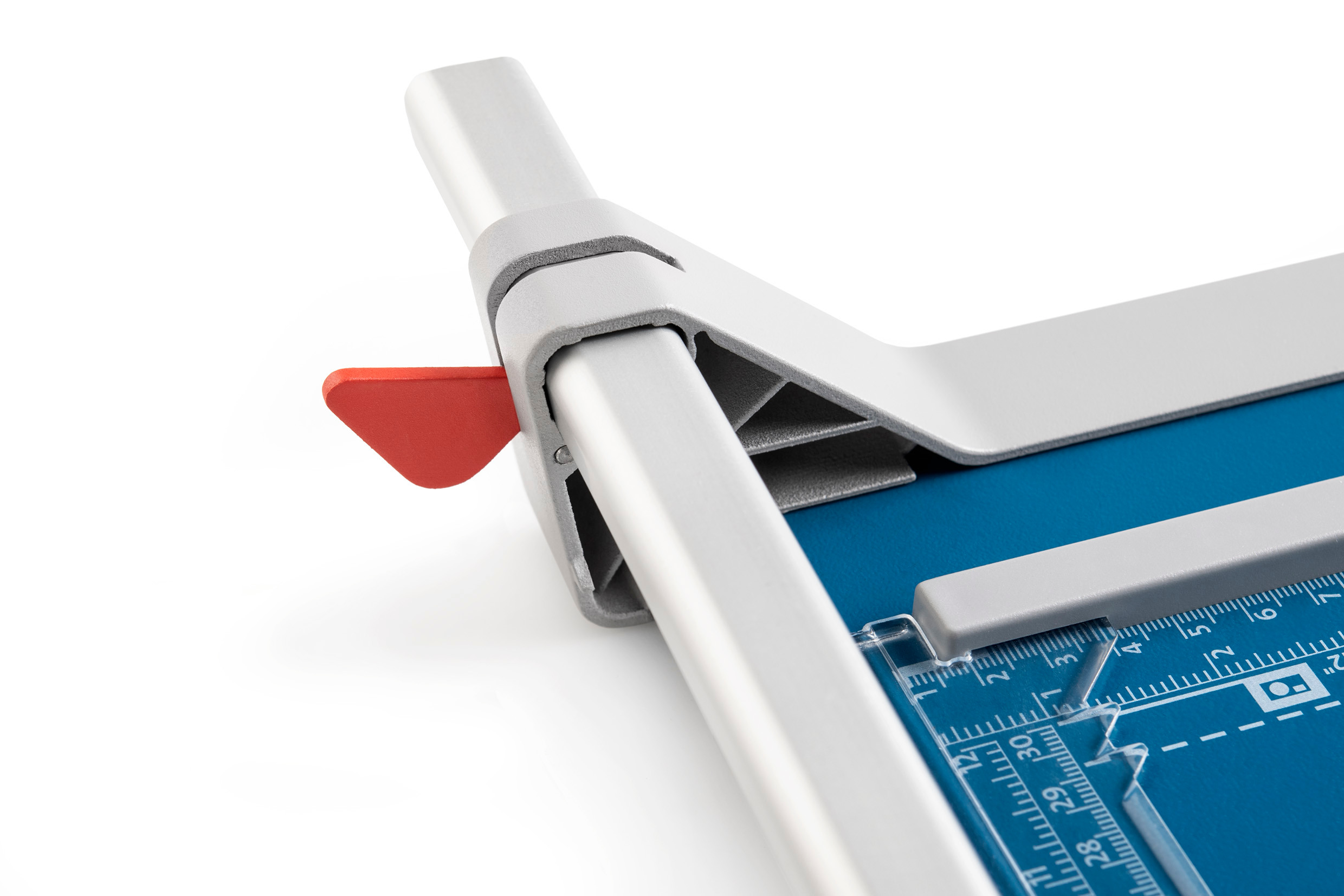 • Kompakter Rollenschneider für Hobby und Einstieg • Stabiler Metalltisch mit rutschfesten Gummifüßen für einen sicheren Stand • Nützliche Formatlinien auf dem Tisch mit mm-Teilung entlang der Schneidkante erleichtern die Ausrichtung des Schnittgutes • Selbstschärfendes Stahl-Rundmesser im geschlossenen Sicherheits-Schneidkopf, geschliffen • Untermesser aus Stahl • Automatische Pressung an der Schnittstelle für eine schnelle Fixierung des Schnittgutes • Zwei Winkelanlagen mit mm-Skala für einen exakten 90°-Schnitt • Einfacher Messerkopf-Wechsel • Creativ-Set mit drei Schneideköpfen für Perforation, Falz und Büttenschnitt optional erhältlich (00980-14986)