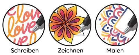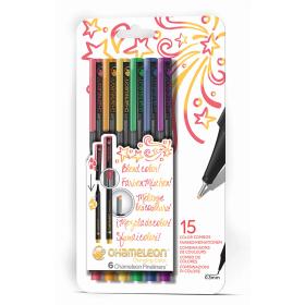 Chameleon Fineliner haben ein patentiertes Doppeltintensystem mit Tinte im Stift und in der Kappe! Um Farben sofort zu mischen, müssen Sie nur die Kappe wechseln oder die Spitze auf einen anderen Stift stülpen, einige Sekunden warten und lebendige Farben für Farbmischungen erstellen! Schreiben, zeichnen und malen wie kein anderer! Ideal zum Schreiben, Malen, Kritzeln und Zeichnen. Perfekt für Bullet-Journale und Planer, da die Tinte nicht durch die meisten Papiere fliesst. Verfügt über eine feinspitzige japanische 0,3-mm-Metallspitze für eine super gleichmässige Schreibleistung. Ergonomisches Design. Trockensichere Tinte auf Wasserbasis. Wird nicht durch die meisten Papiere bluten.