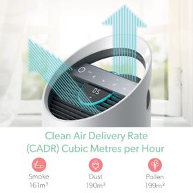 - Intuitive Touch-Steuerung für einfache Bedienung: mit Timer-Einstellung, 4 manuellen Lüftergeschwindigkeiten, Filterwechselanzeigen und Nachtmodus. Ein farbcodierter beleuchteter Ring und ein numerischer Wert auf dem Display zeigen die aktuelle Luftqualit