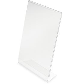 Praktischer magnetoplan Aufsteller, schräg geneigt aus glasklarem Polystyrol. Für die einseitige Präsentation stehen Tageskarten, Aktions- oder Hinweisschilder optimal im Blickfeld. Die Einlagen werden seitlich in den Aufsteller geschoben.
