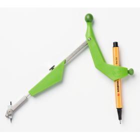Für alle Schreibgeräte bis 12 mm Durchmesser, neuartiger Zirkelkopf, aus beschichtetem Kunststoff, mit Verlängerungsstange, transparentem robustem Etui, 2 verschiedene Versionen, Kreis-Ø max. 500 mm, inkl. 1x STABILO point 88 Mini schwarz.