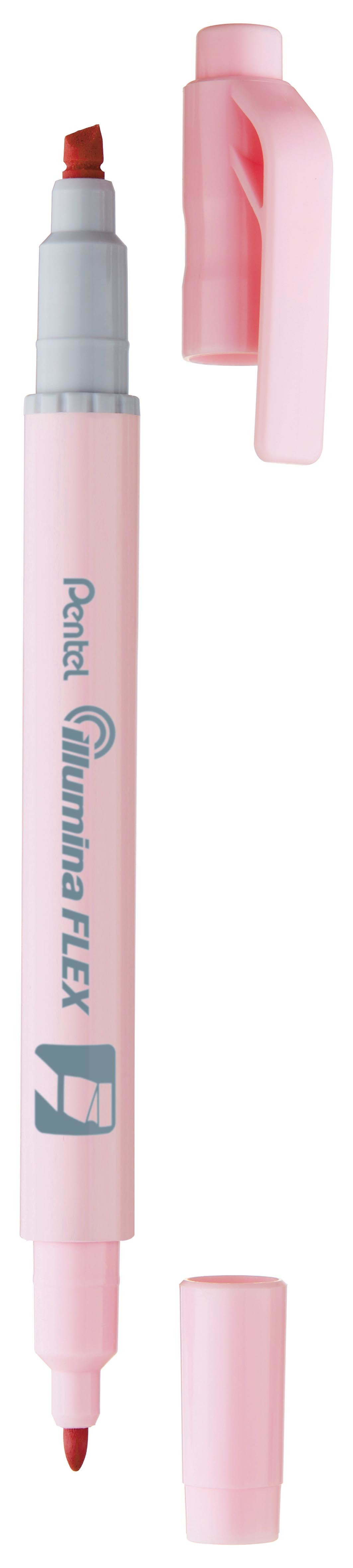 Pastell-Leuchtstift Illumina Flex, mit zwei unterschiedlichen Spitzen: 1 breiter, flexibler Schreibkopf für weiche Untergründe (z.B. Buchseiten), Strichbreiten von 1.5 - 3.5mm und 1 feine Rundspitze zum Highlighten und Schreiben, Stichbreite 1mm.