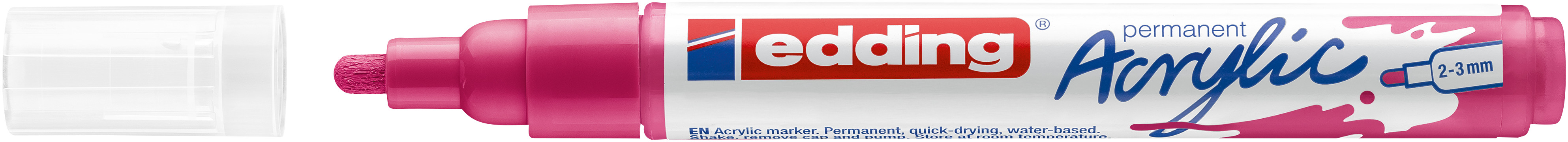 Acrylmarker zum Malen auf hellen oder dunklen Oberflächen, ideal für Materialien wie Leinwand oder Malpapier. Die Rundspitze hat eine Strichstärke von 2 - 3 mm. Die hochwertige pigmentierte Acrylfarbe auf Wasserbasis ist deckend, lichtbeständig, geruchsarm und nach dem Trocknen permanent. In 26 verschiedenen Farben erhältlich. Die Farben sind perfekt auf die Farbpalette der edding 5200 Permanentsprays abgestimmt. Geeignete Ersatzspitzen (edding 5100 Ersatzspitzen) sind erhältlich.