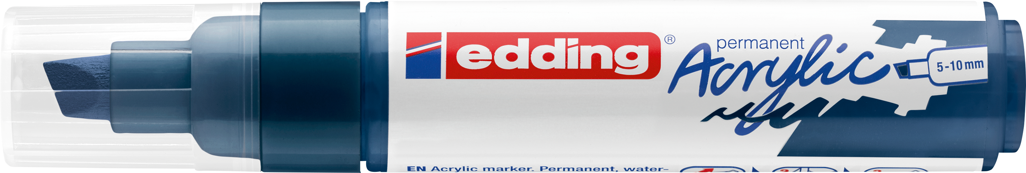 Acrylmarker zum Malen auf hellen oder dunklen Oberflächen, ideal für Materialien wie Leinwand oder Malpapier. Die Keilspitze hat eine Strichbreite von 5-10 mm. Die hochwertige pigmentierte Acrylfarbe auf Wasserbasis ist deckend, lichtbeständig, geruchsarm und nach dem Trocknen permanent. In 26 verschiedenen Farben erhältlich. Die Farben sind perfekt auf die Farbpalette der edding 5200 Permanentsprays abgestimmt. Geeignete Ersatzspitzen (edding 5000 Ersatzspitzen) sind erhältlich.