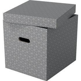 Elegante und moderne Aufbewahrungsboxen aus Wellpappe mit abnehmbarem Deckel, ideal zum Verpacken von Geschenken oder zum schnellen Verstauen von Utensilien zu Hause. Set mit drei Boxen der gleichen Grösse, zur Aufbewahrung in Regalen oder in kubischen, offenen Möbeln, um kleinere Gegenstände wie Fotos und persönliche Dokumente ordentlich und leicht auffindbar aufzubewahren. Mit etwas Geschenkband können Sie mit diesen Boxen auch ein Geschenk verpacken! Nach dem Öffnen kann die Box dann vom Empfänger für die Aufbewahrung zu Hause wiederverwendet werden und bietet somit 2 Geschenke in einem. Hergestellt aus stabiler, 100 % recycelter und 100 % recycelbarer FSC-zertifizierter Wellpappe. Die abwischbare Oberfläche ist mit einem zweifarbigen, geometrischen Design versehen, um Ihrer Aufbewahrung Stil zu verleihen. Wird flach verpackt geliefert und lässt sich schnell und einfach aufbauen. Die robuste Konstruktion mit doppelten Seitenwänden und Boden sorgt für Stabilität und Langlebigkeit.