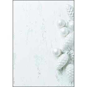 - Motivpapier in moderner Optik mit weissen Weihnachtskugeln und Zapfen-Anhängern als Motiv, umweltfreundliches 90g-Papier mit FSC-Zertifizierung