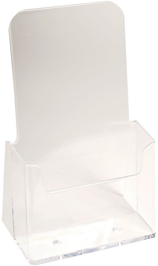Mit dem Tischprospekthalter aus transparentem Polystyrol können Sie Ihre Prospekte, Flyer und andere Werbe- oder Informationsmaterialien zur Selbstbedienung präsentieren und auslegen.