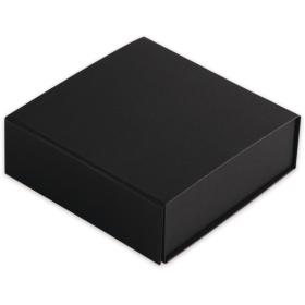 Hochwertige Geschenkbox aus schwarzem Karton (1200 g/m²). Mit Magnetverschluss. Flach angeliefert und dank Haftklebestreifen einfach aufzustellen.