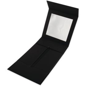 Edle Geschenkbox aus Karton (1200 g/m²). Dank Sichtfenster im Deckel, lassen sich die Inhalte elegant in Szene setzen. Einfaches und rasches Falten der Box dank Velcro.