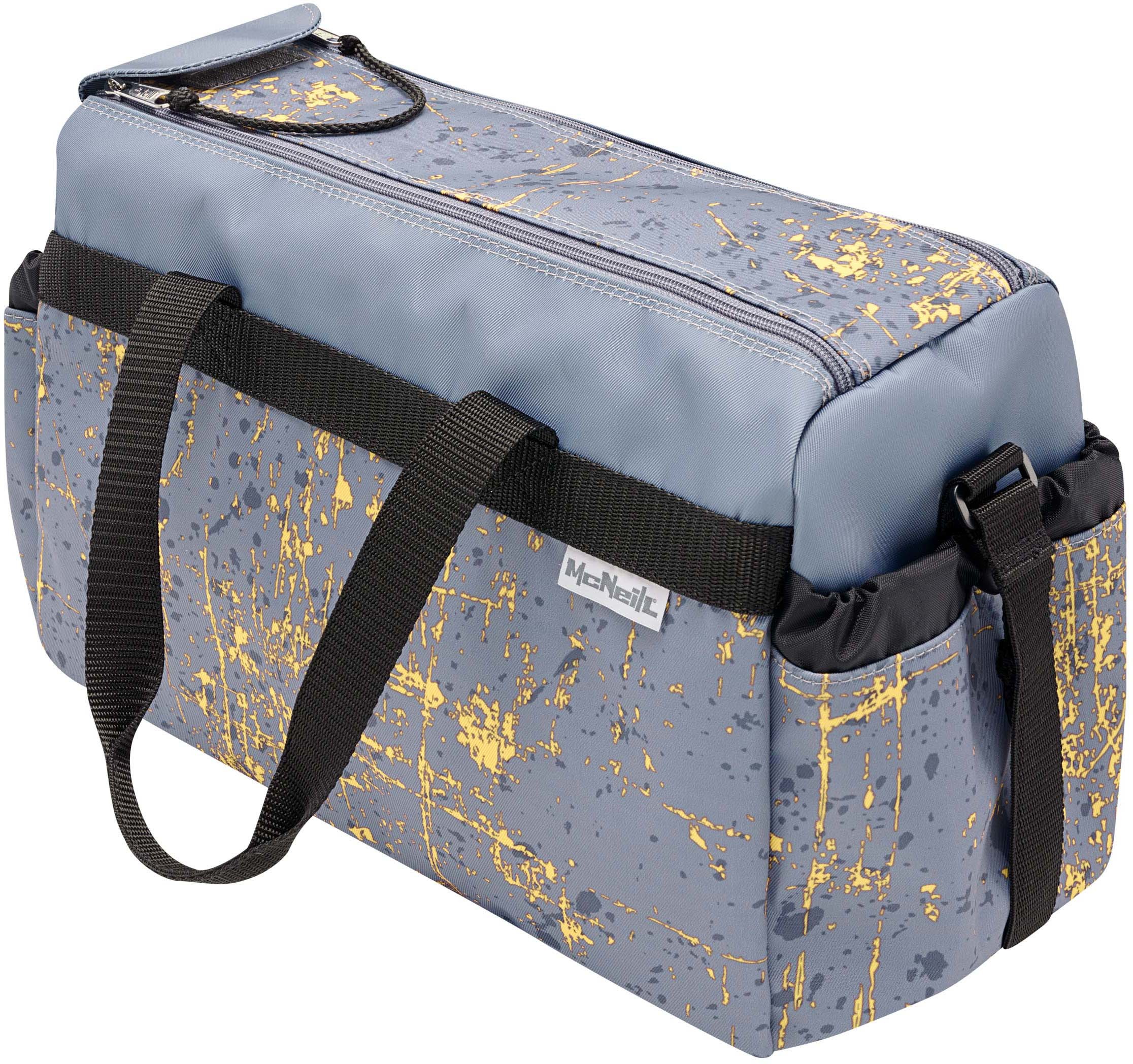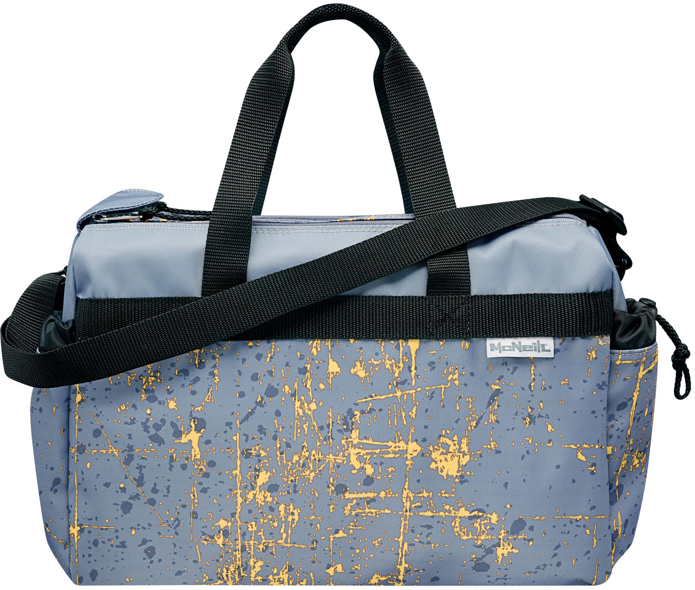 Die stylische Sporttasche von McNeill ist der ideale Begleiter für den Sportunterricht und den Freizeitsport. Neben dem grossen Hauptfach mit Reissverschluss verfügt die Sporttasche über zwei Kordelzugtaschen an den Seiten, wo z.B. Getränkeflaschen untergebracht werden können. Vorne hat die Sporttasche ein grosses Nassfach für die Schwimmsachen und das nasse Handtuch. Für ein angenehmes Tragegefühl sorgen der verstellbare Umhängegurt und die beiden Tragegurte.