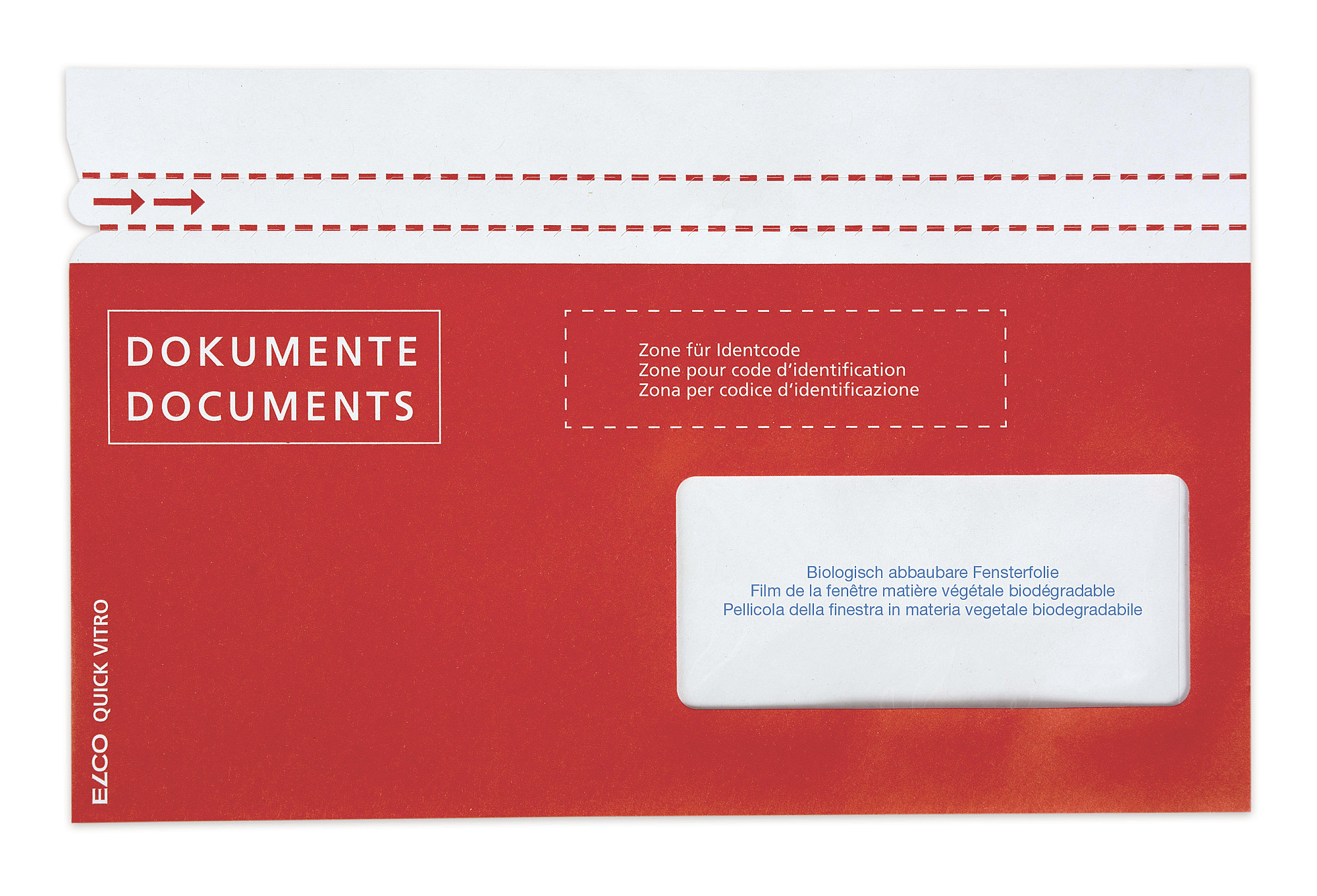 Dokumententasche C5/6 mit Fenster rechts, 100% aus Papier, 100% recyclierbar, Fenster biologisch abbaubar, mit Druck rot "Dokumente"