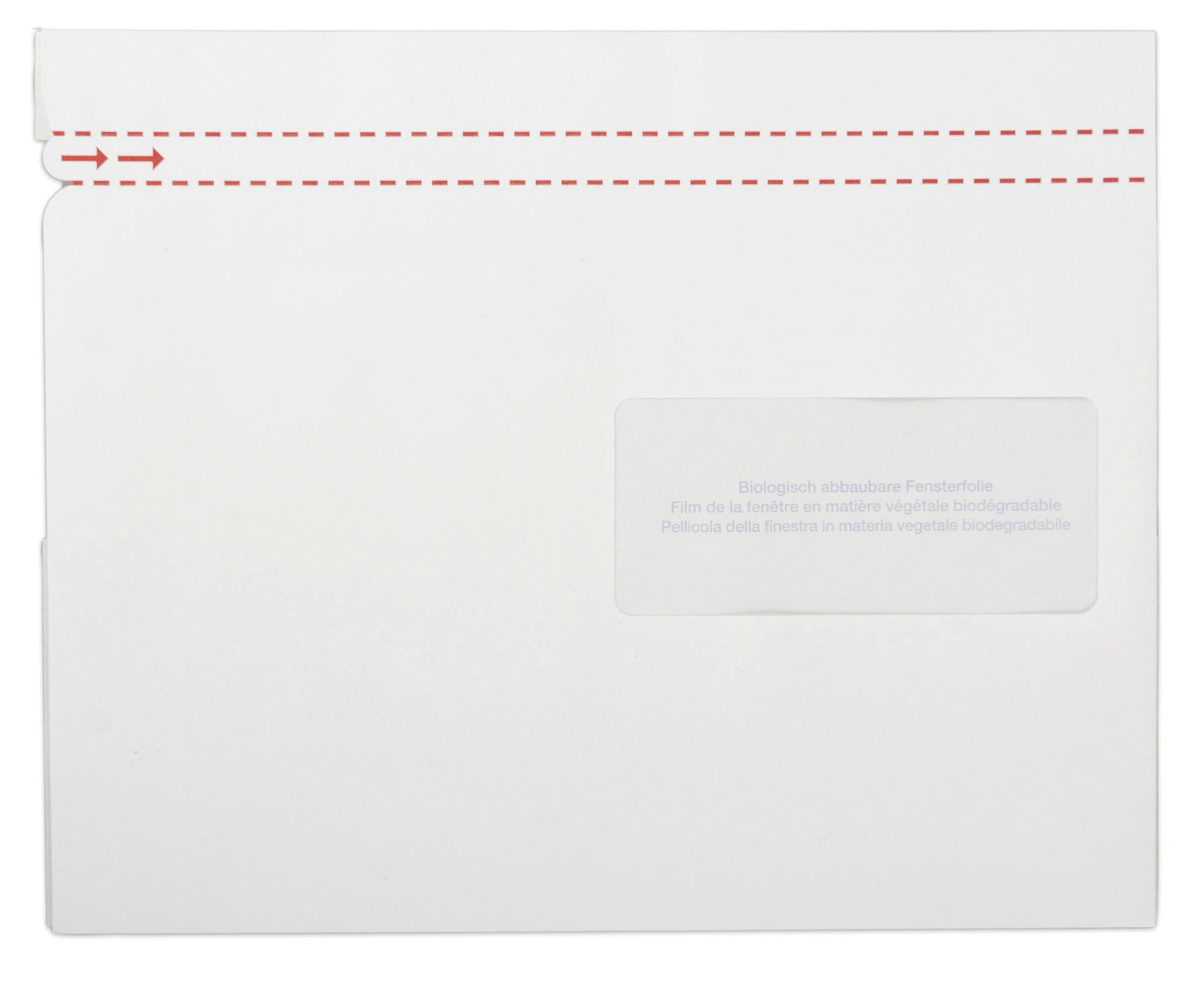 Dokumententasche C5 mit Fenster rechts, 100% aus Papier, 100% recyclierbar, Fenster biologisch abbaubar, weiss bedruckbar