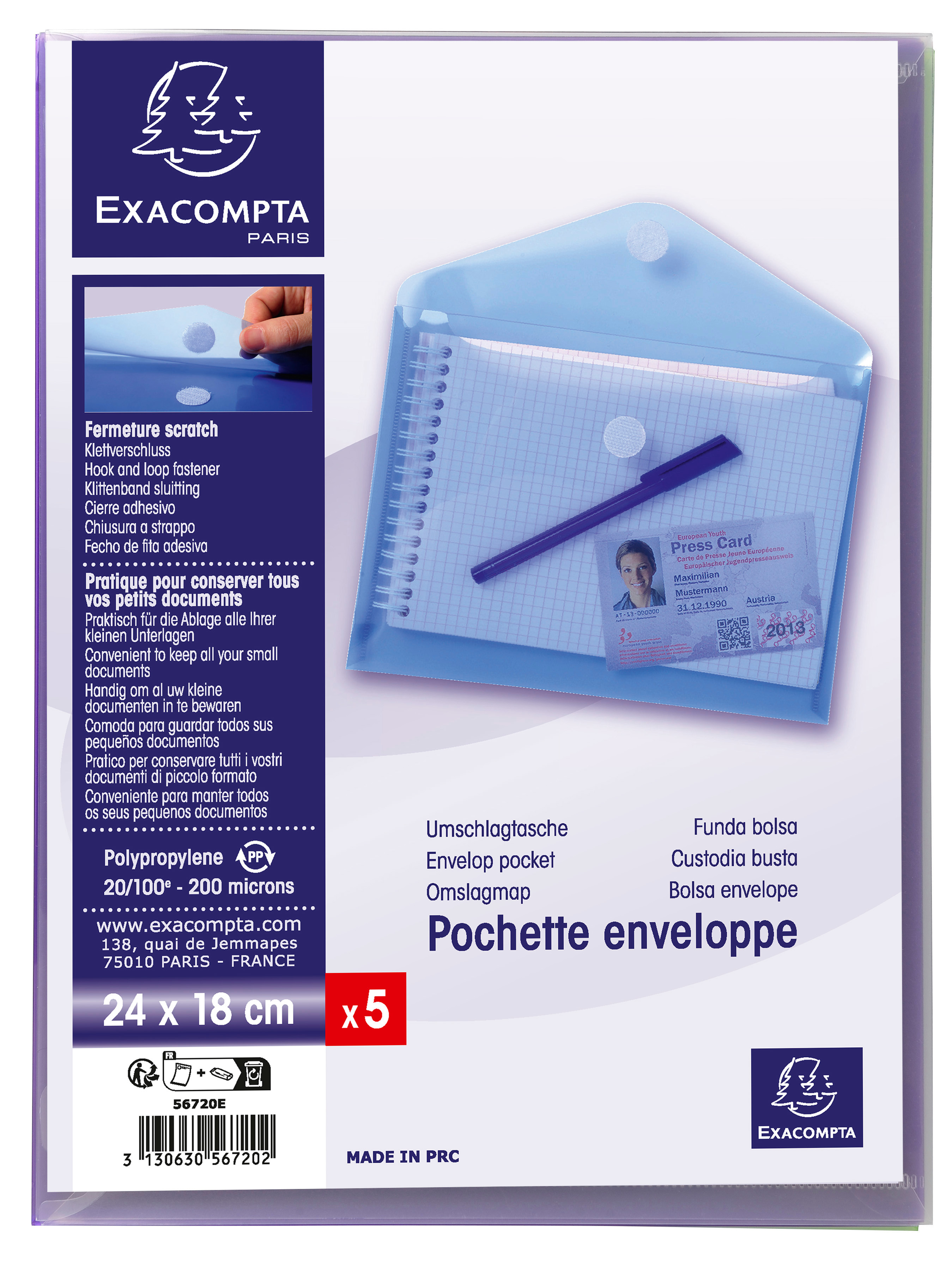 Die Prospetkhüllen mit Klettverschluss lassen sich einfach schliessen. Dadurch bieten sie einen perfekten Schutz verschiedenster Dokumente oder diversen kleinen Gegenständen, wie etwa Kassenbons, Quittungen, gefaltete A4-Blätter etc. Die unterschiedlichen Farben vereinfachen die Organisation, indem Sie dadurch Ihre Unterlagen einfach beispielsweise nach Themen oder Rubriken sortieren können. Aus flexiblem PP, für eine lange Lebensdauer entworfen.