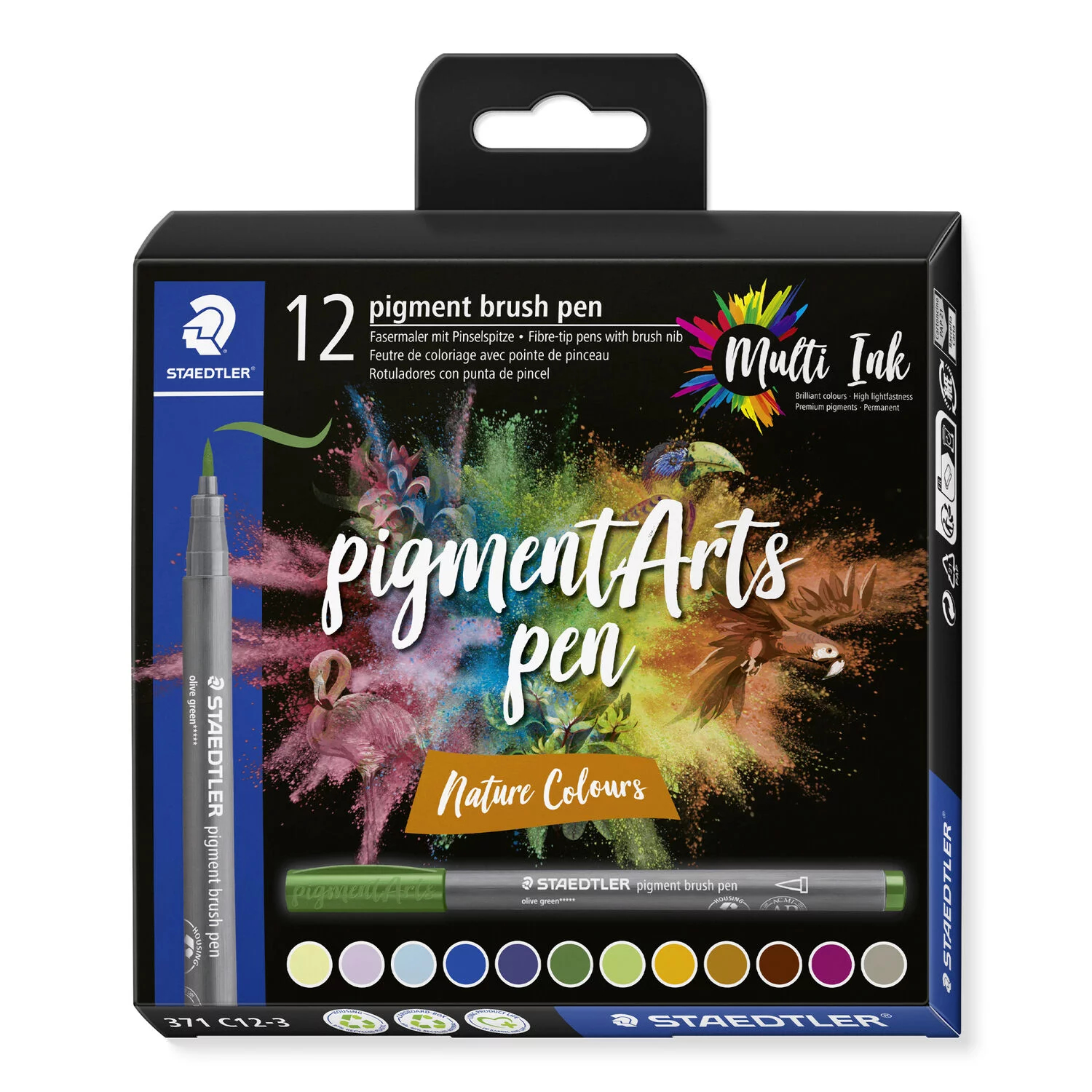Die Innovation für eine farbenfrohe und nachhaltige Zukunt – STAEDTLERs neues Brush-Sortment „pigment arts“ mit der einzigartigen „Multi Ink“ Tinte vereint die Vorteile farbstoffbasierter Tinten mit Pigmenttinten: Leuchtende Farbbrillanz mit einer aussergewöhnlichen Lichtbeständigkeit garantieren langanhaltende Anwendungsergebnisse. Die schnelle Trocknung sorgt für problemloses Übermalen, ohne zu verschmieren oder zu verlaufen, selbst auf glatten Untergründen wie Fotopapier. Vier verschiedene Spitzen in bis zu 36 Farben in Kombination mit der absoluten Tinteninnovation machen «pigment arts» zum idealen Allrounder für alle Einsteiger, Kreative und professionelle Anwender, die gerne unterschiedliche Maltechniken, Materialien und Malmedien miteinander kombinieren. Zusätzlich beeindruckt «pigment arts» durch seine Nachhaltigkeit - das Gehäuse des Schaftes besteht aus 97 % recyceltem Plastik. Bringen auch Sie ihr Kunstwerk zum Erstrahlen - Get MULTI creative!