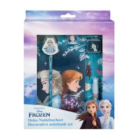 Notizbuch (11,80 x 17,70 cm), 60 Seiten mit einfarbigen Druck, Pailletten in zwei Farben, Glitzerkleber, Stempel, Stempelkissen, Bleistift mit Radierertopper, Stickerbogen (10,50 x 15,50 cm)