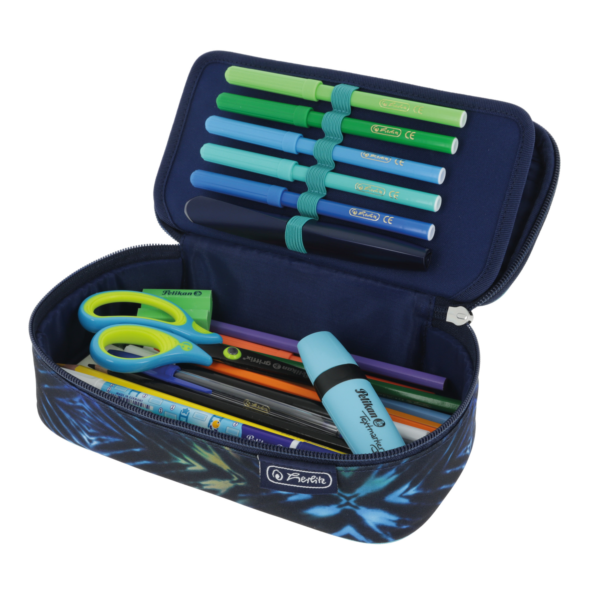 Batik is back! Faulenzer mit grossem Hauptfach, verschliessbar mit stabilem, farblich passendem Reissverschluss. Reissverschlussfach für Kleinteile in Deckel und Klappe mit Stifteschlaufen.