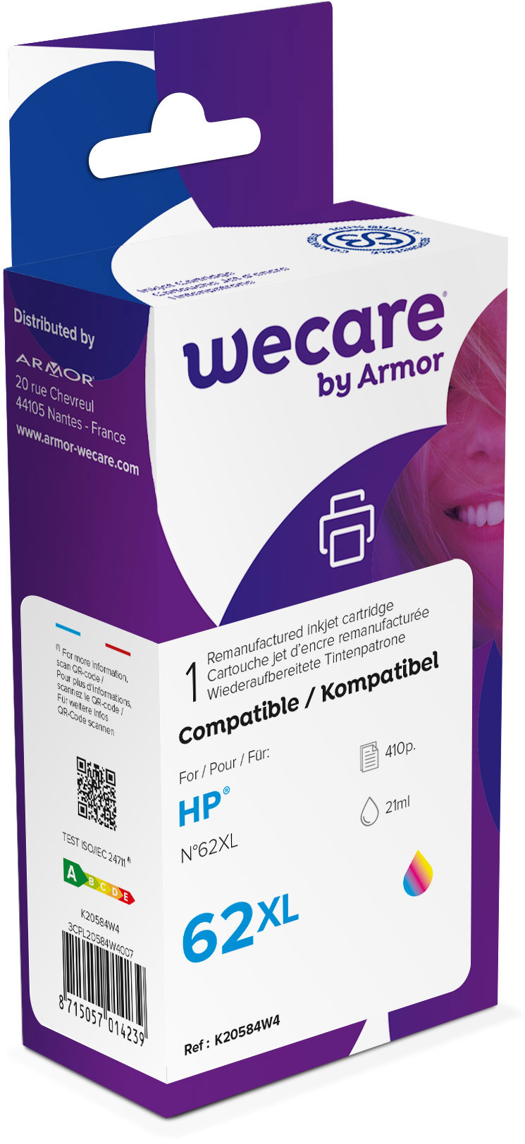 WECARE Tinte 62XL rebuilt color C2P07AEWE zu HP Envy 5640 e-AiO 21ml 719361-ITC