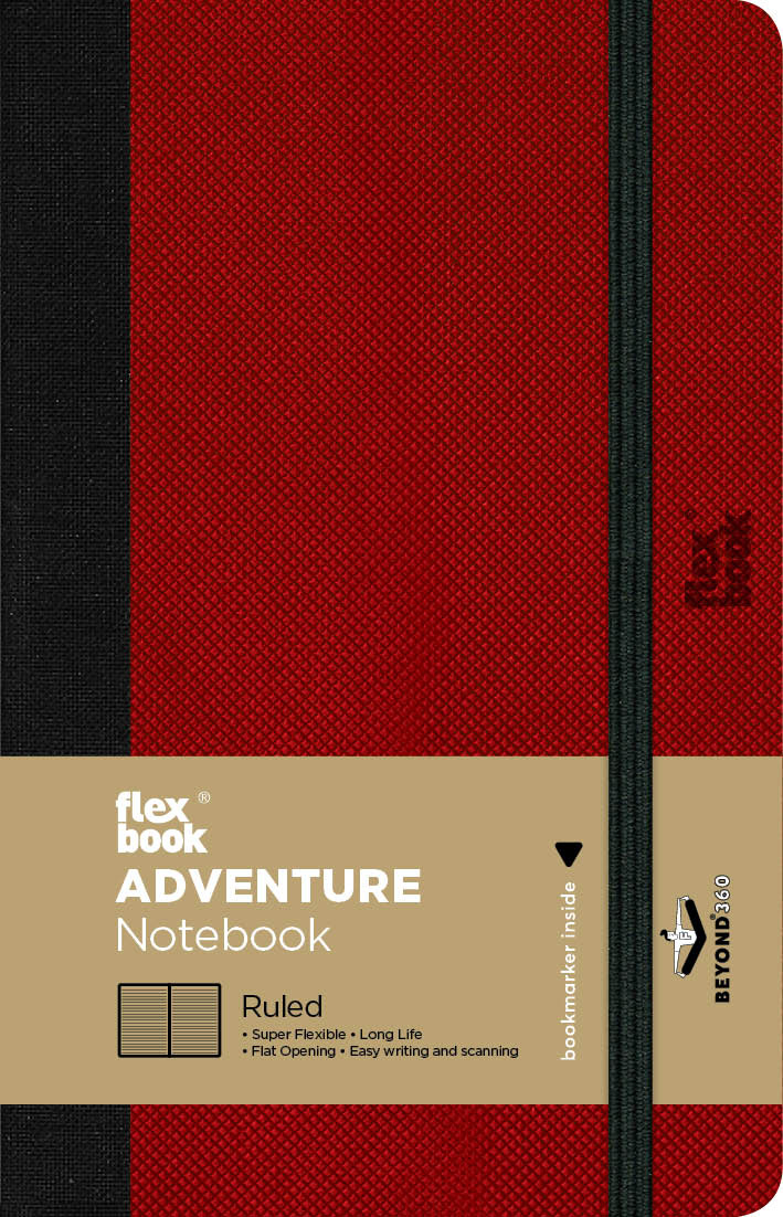 Flexbook Adventure Notizbuch aus feinem Kunstleder mit spezieller Textur. Flexbook Bindung mit Gummizug. 192 Seiten, liniert. Elfenbein Papier 85gr. Innere Papiertasche zur Aufbewahrung. Thermoprägung. Mit abgerundeten Ecken. Enthält 10-seitige Faltbroschüre mit der. Geschichte von Flexbook in 6 Sprachen.