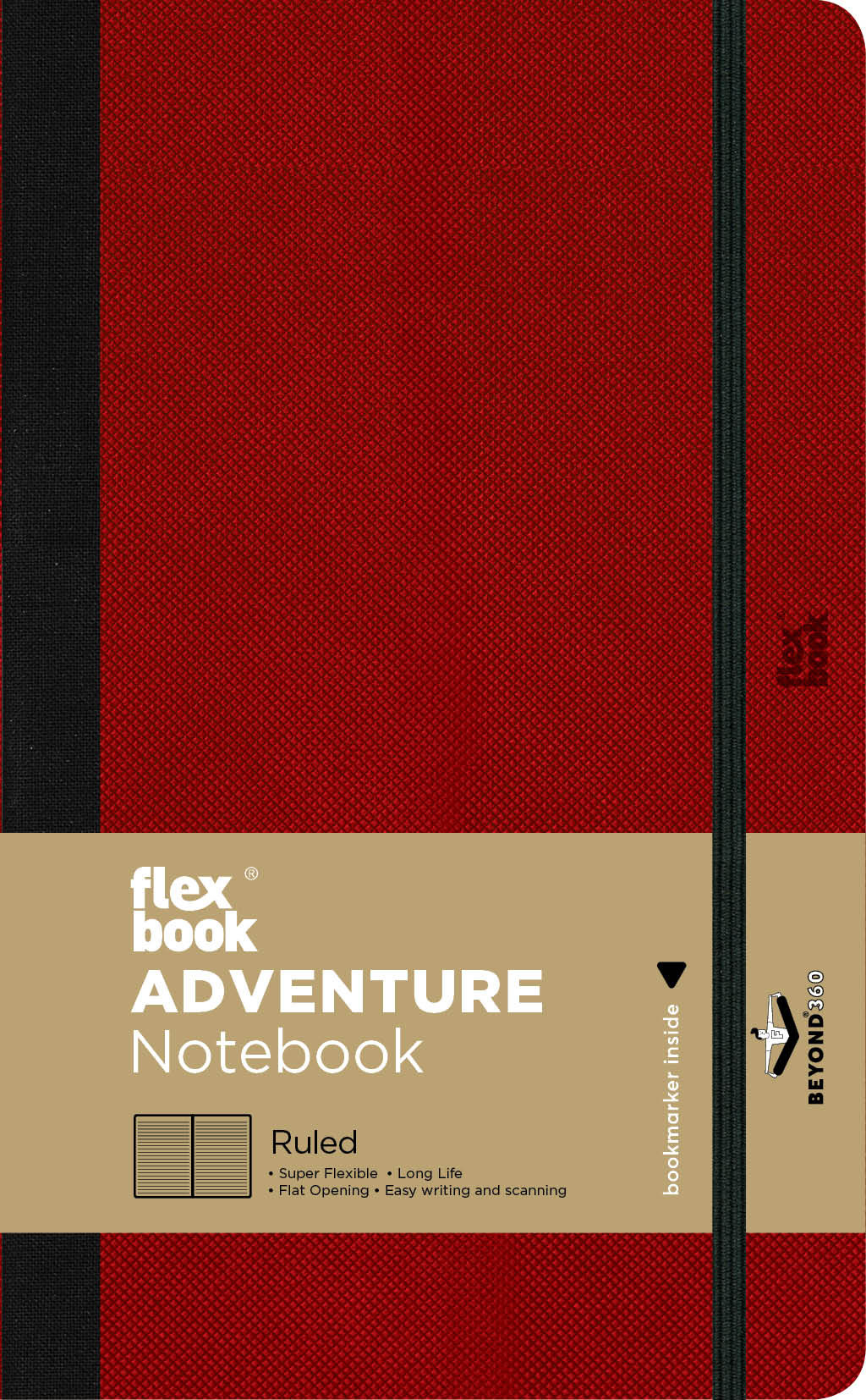 Flexbook Adventure Notizbuch aus feinem Kunstleder mit spezieller Textur. Flexbook Bindung mit Gummizug. 192 Seiten, liniert. Elfenbein Papier 85gr. Innere Papiertasche zur Aufbewahrung. Thermoprägung. Mit abgerundeten Ecken. Enthält 10-seitige Faltbroschüre mit der. Geschichte von Flexbook in 6 Sprachen.
