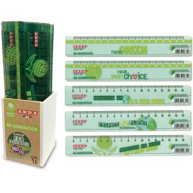 Lineal Re-Generation 16cm, hellgrün, transparent mit heissgeprägter Skalierung. Material aus biologisch abbaubarem Kunststoff. 100% recycelbar. Verpackung aus Recycling-Papier. Geeignet für die Schule, das Büro und für die Verwendung zu Hause.