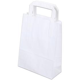 Papiertasche mit Flachhenkel aus weissem Kraftpapier mit einer Papierqualität von 80 g/m². Für verschiedene Anwendungen.