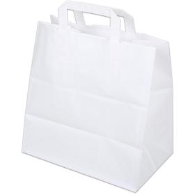 Papiertasche mit Flachhenkel aus weissem Kraftpapier mit einer Papierqualität von 90 g/m². Für verschiedene Anwendungen.