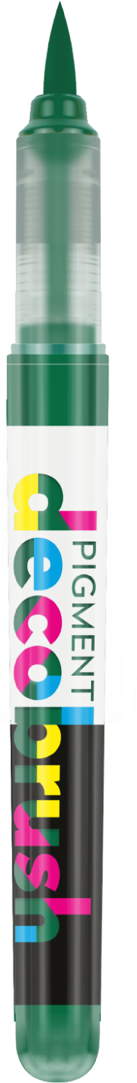 Die Verwendung von PIGMENT Decobrush Markern ähnelt Acrylfarben, ist jedoch in einem einfach zu verwendenden Marker mit einer flexiblen Nylonspitze eingeschlossen. Diese Farbe kann auf Papier, Metall, Glas, Kunststoff, Holz, Textilien und vielen anderen Materialien verwendet werden. Die opake, matte Farbe ermöglicht das Auftragen auch auf dunklen Oberflächen mit Techniken, die für andere Marker noch nicht verfügbar sind. PIGMENT-Decobrush-Marker enthalten 2,4 ml opake und ungiftige Acrylfarben auf Basis organischer Pigmente. Sie wurden wie unsere anderen Marker in der Technologie der "flüssigen Tinte" hergestellt und ermöglichen dank dieser Technologie - im Gegensatz zu herkömmlichen Technologien - einen Farbverbrauch von 100%.