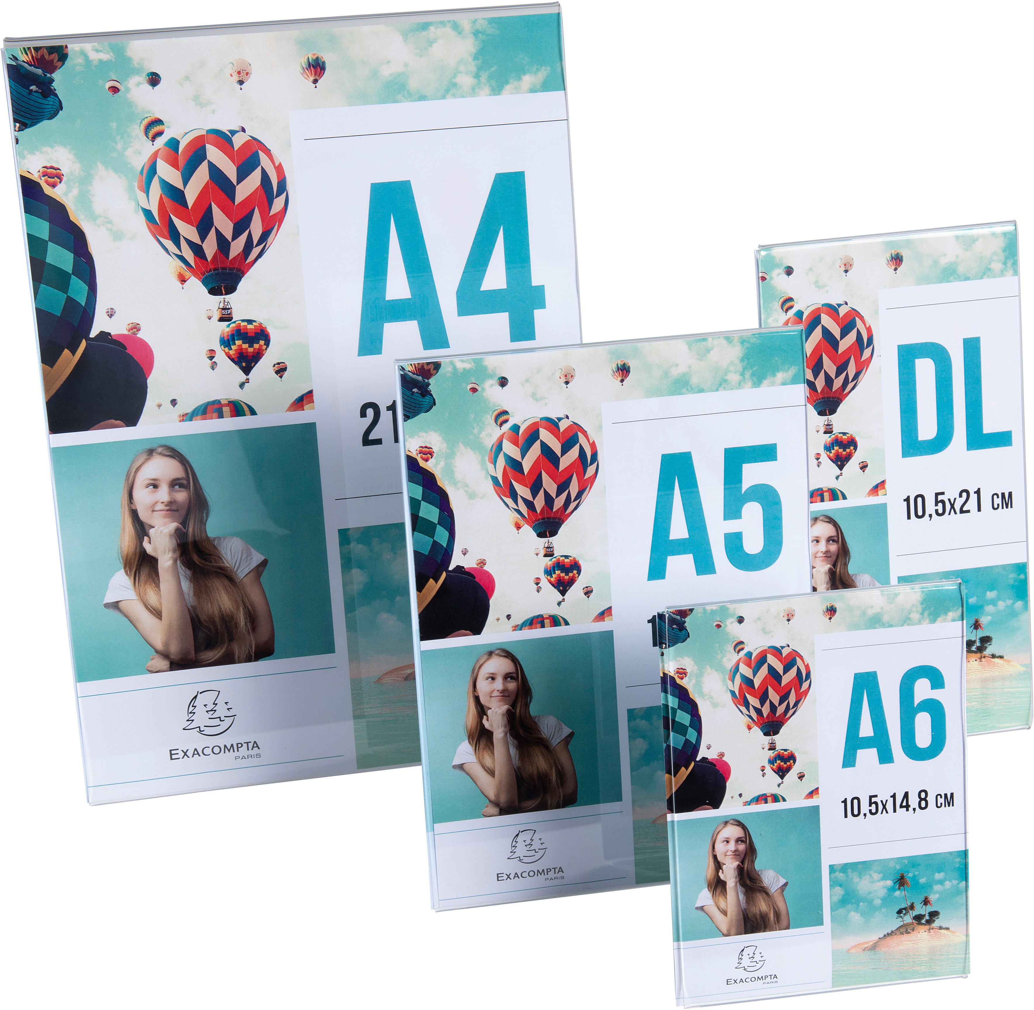 Tischaufsteller in insgesamt 4 Formaten, im Hoch- oder Querformat verfügbar (A4 - A5 - A6 - DL).