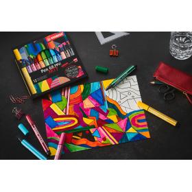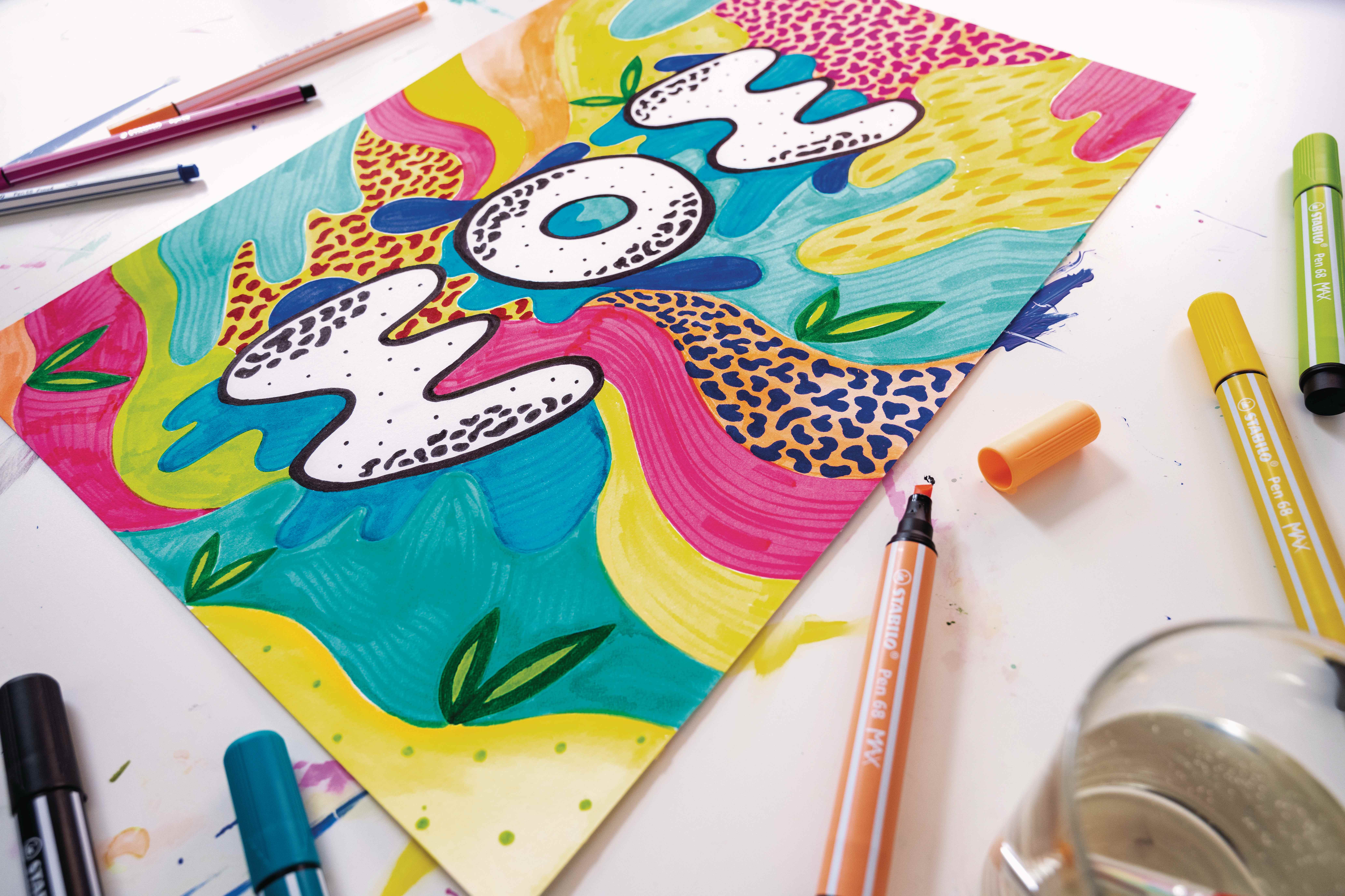 Der STABILO Pen 68 MAX ARTY ist ideal für grosse Flächen, aber auch präzise Konturen. Die Tinte auf Wasserbasis, ermöglicht Aquarellieren und Verblendungen. Die 24 Farben haben eine hohe Farbbrillanz und Leuchtkraft, für kräftige Linien und deckende Flächen.