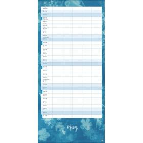 Das übersichtliche Kalendarium mit 5 Spalten zum Eintragen bietet viel Platz für Termine und Notizen.